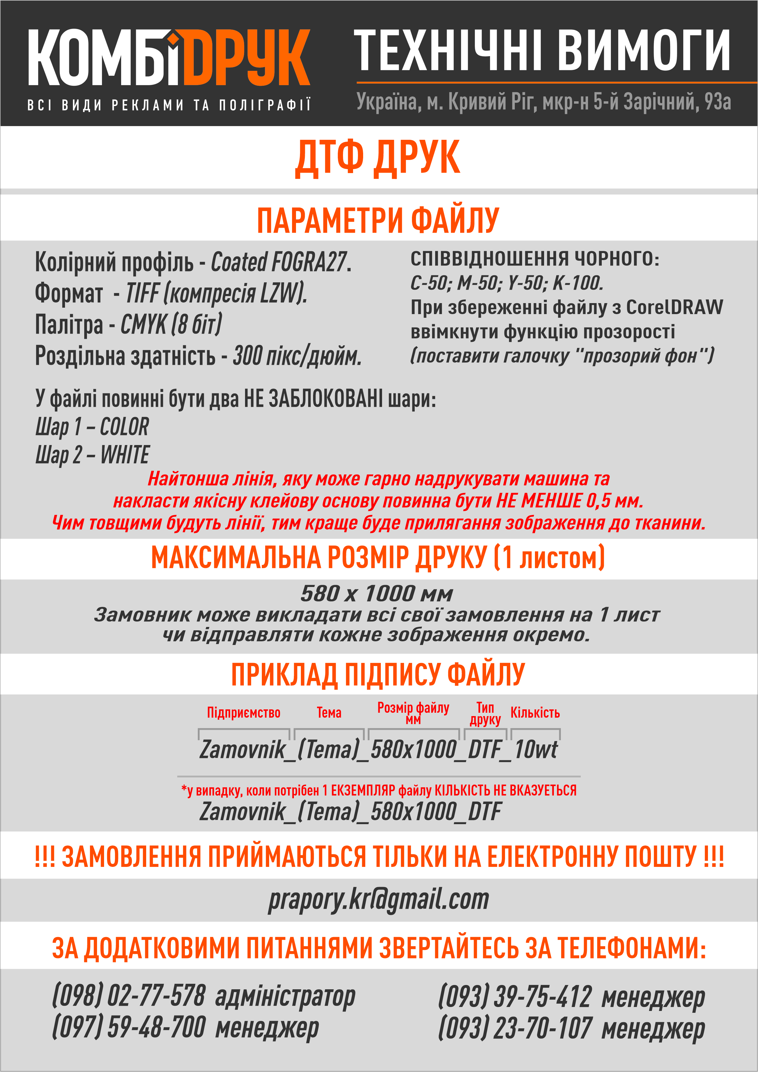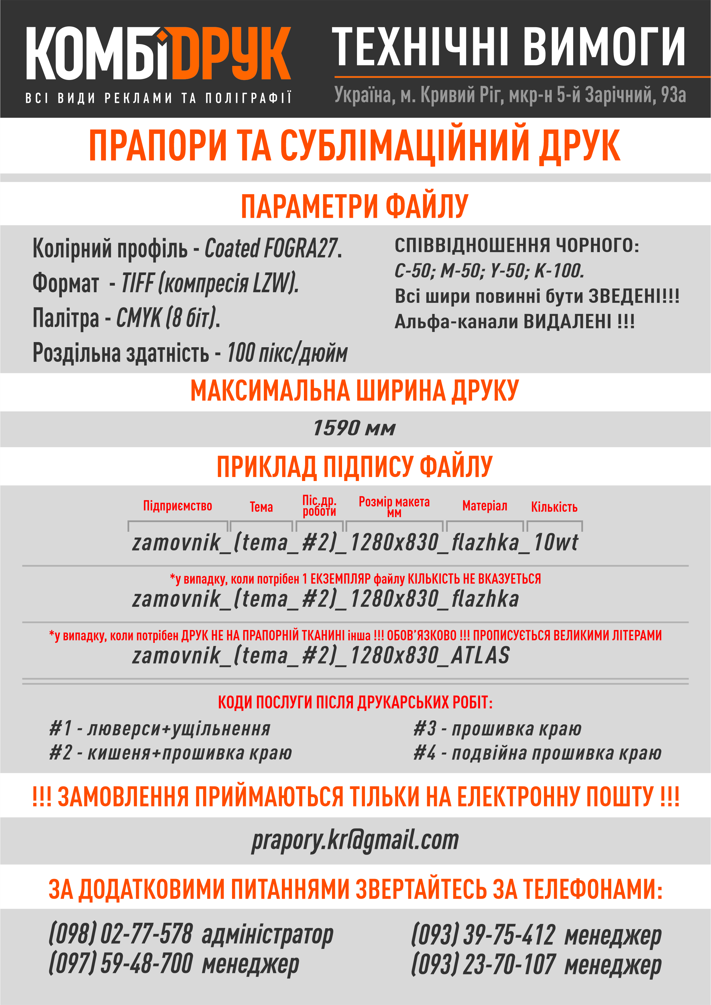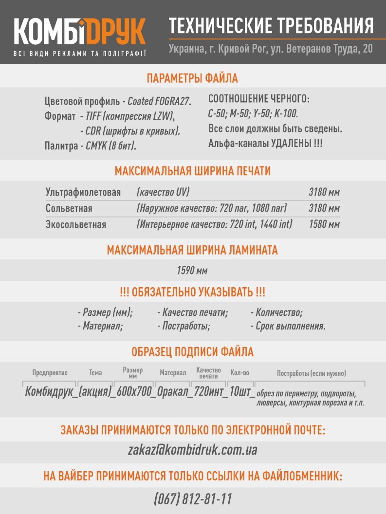 Типографія Комбідрук > Технічні вимоги